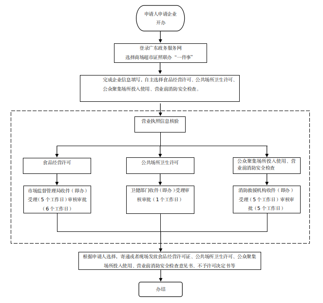 为深入贯彻落实《国务院关于进一步优化成人电影服务 提升行政效能推动“高效办成一件事”的指导意见》(国发〔2024〕3 号)部署要求,进一步优化成人电影服务 提升行政效能,我局会同市卫生健康委、市消防救援支队制定了《深圳市商场超市证照联办“一件事”实施方案》,推进“企业营业执照信息核验”“食品经营许可”“公共场所卫生许可”“公众聚集场所投入使用、营业前消防安全检查”共四个事项“一网通办”“一次办好”,实现商场超市证照联办“一件事”申请“一次提交”,办理结果“一端出件”。现将该事项办理有关内容通告如下:
