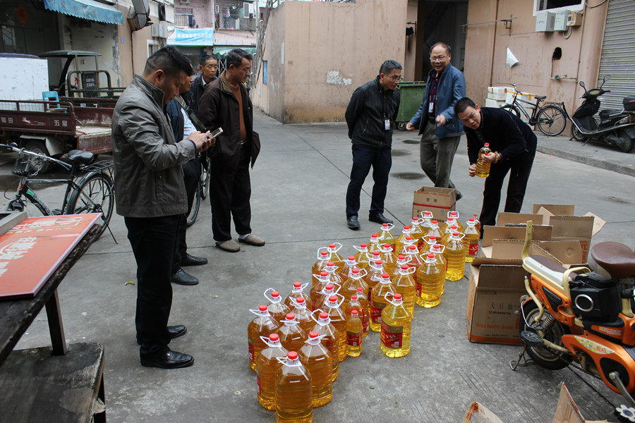 为了加强深圳市大鹏新区食用油品市场监管力度,进一步做好辖区食品质量安全打假工作,维护广大消费者合法权益,2017年3月8日下午,大鹏新区打假办联合金龙鱼食用调和油的权利人,开展了食用油品市场检查行动。