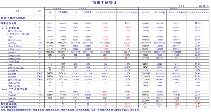2017年4月份商事主体统计报表