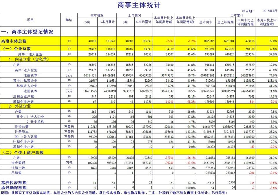 2015年5月份商事主体统计报表