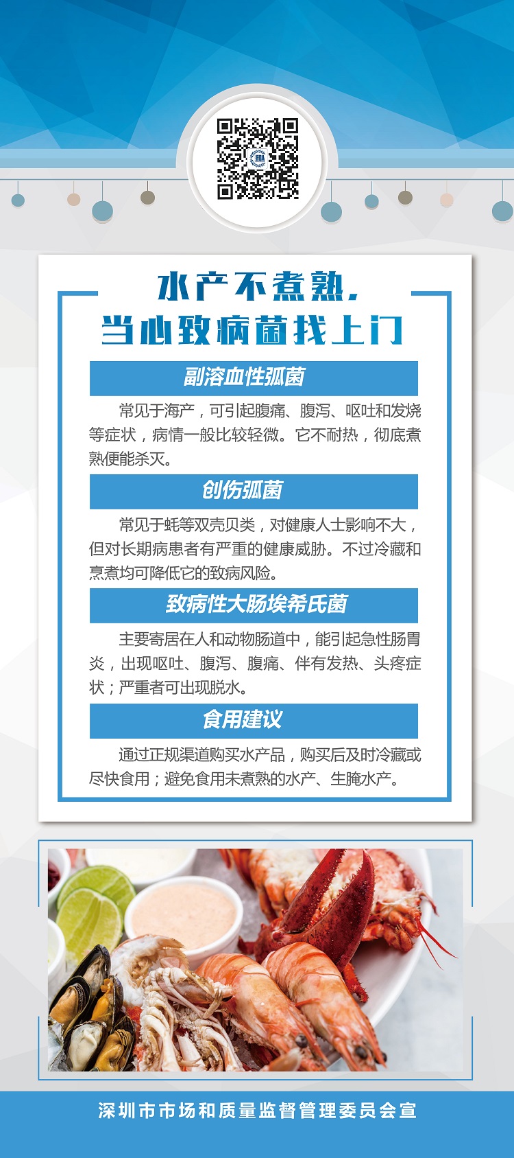 通过正规渠道购买水产品,购买后及时冷藏或尽快食用;避免食用未煮熟的水产、生腌水产。