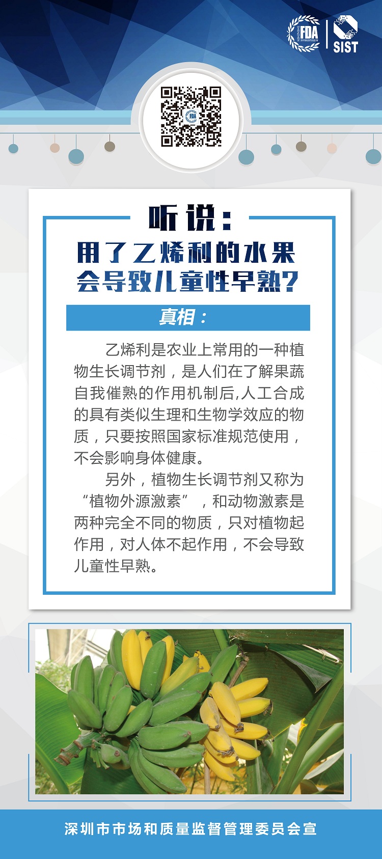 真相:乙烯利是农业上常用的一种植物生长调节剂。是人们在了解果蔬自我催熟的作用机制后,人工合成的具有类似生理和生物学效应的物质,只要按照国家标准规范使用,不会影响身体健康。