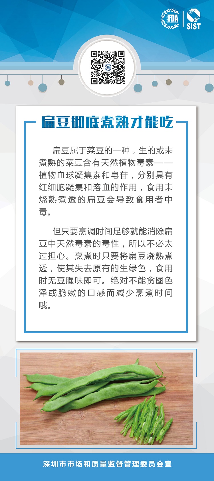 扁豆属于菜豆的一种,生的或未煮熟的菜豆含有天然植物毒素——植物血球凝集素和皂苷,分别具有红细胞凝集和溶血的作用,食用未烧熟煮透的扁豆会导致食用者中毒。