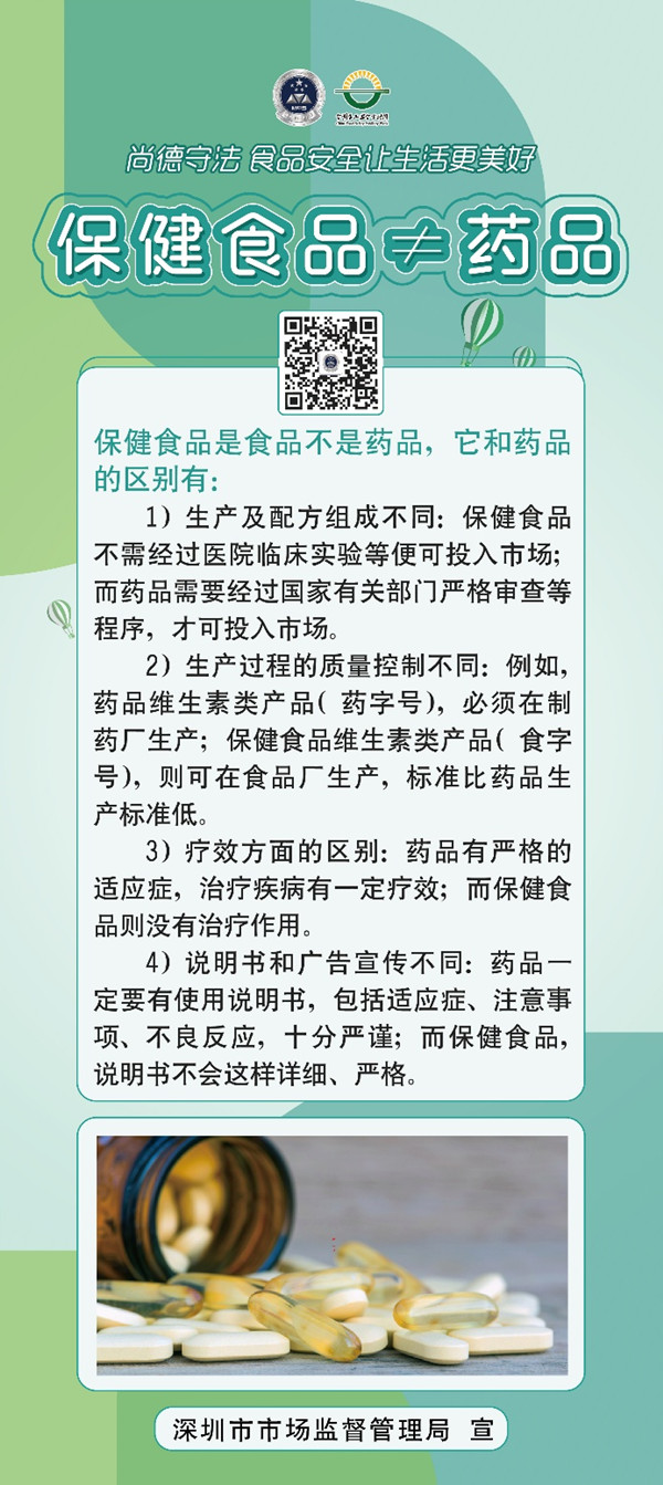 4.说明书和广告宣传不同:药品一定要有使用说明书,包括适应症、注意事项、不良反应,十分严谨;而保健食品,说明书不会这样详细、严格。