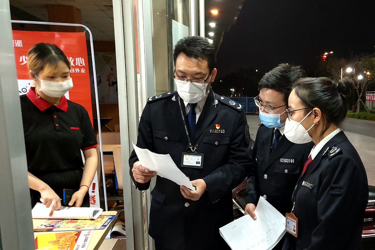 根据光明局2020年度工作会议暨防疫工作阶段推进会部署,2月27日晚,深圳市市场监管局光明局新湖所街所联动开展复工餐饮单位疫情防控“白+黑”专项行动。